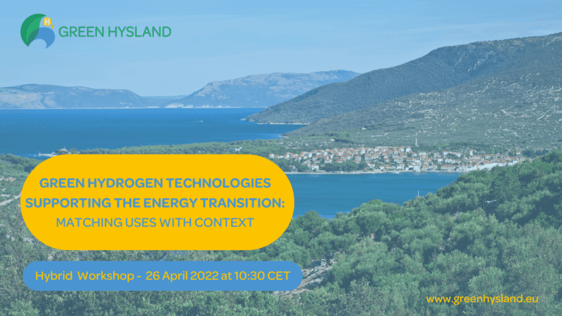 No âmbito do projeto GreenHysland, realizar-se-á o Workshop “Green hydrogen technologies supporting the Energy Transition: Matching uses with Context” no dia 26 de abril às 10h30 CET. Consulte o programa