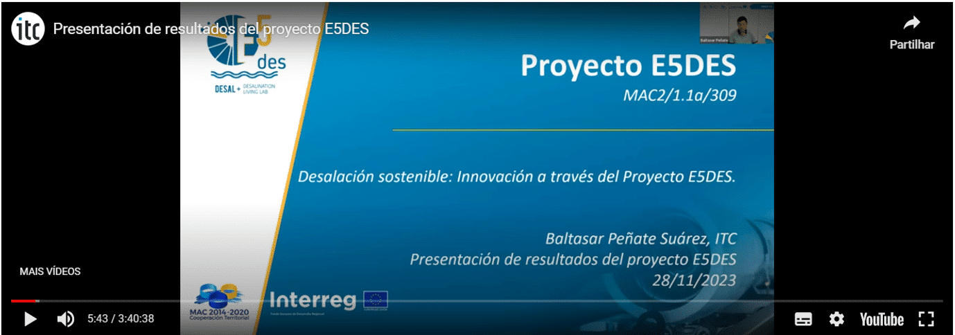 - Dessalinização sustentável: Inovação através do projeto E5DES: Baltasar Peñate, ITC